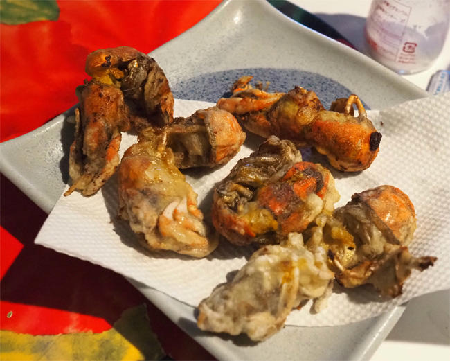 翌日は道の駅で手に入った伝説の食材「まじゃく」を唐揚げにしていただきます。