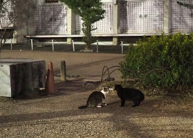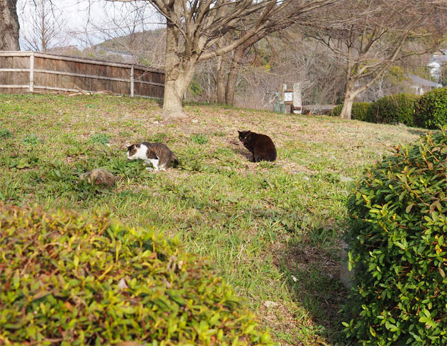 黒猫さんがもどってきて再び3匹に。さて、公園を出てうろうろしてみましょう。