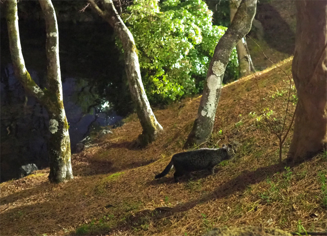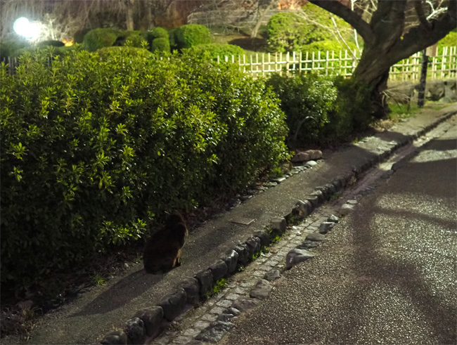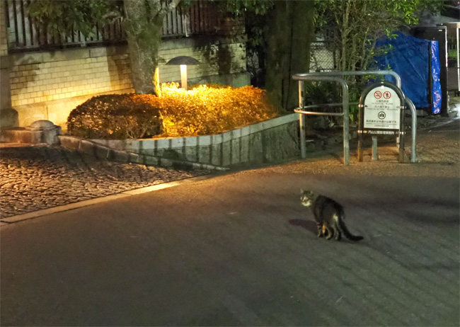 夜、同じ公園に戻ってみるとキジトラさんが歩いています。