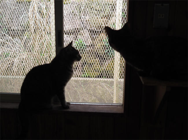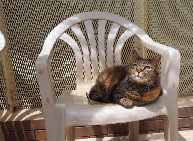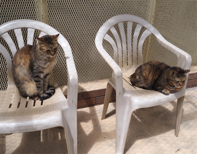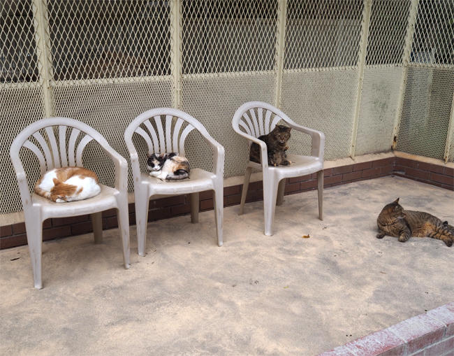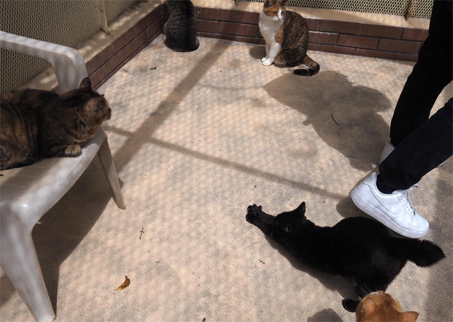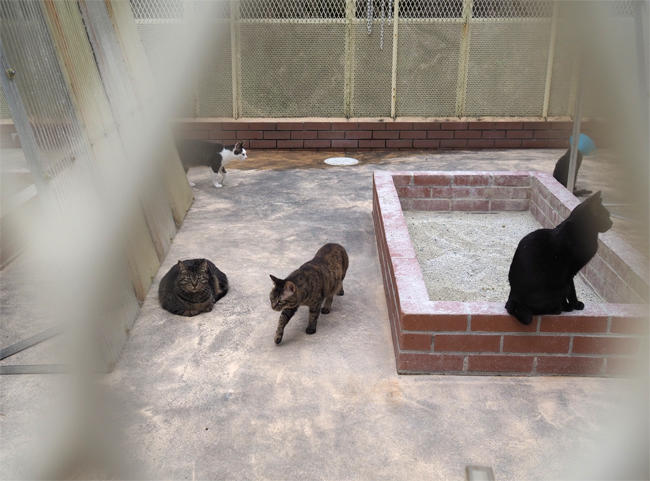 脱走防止の2重扉の中に入ると、まずは庭で日向ぼっこする猫さんたち。