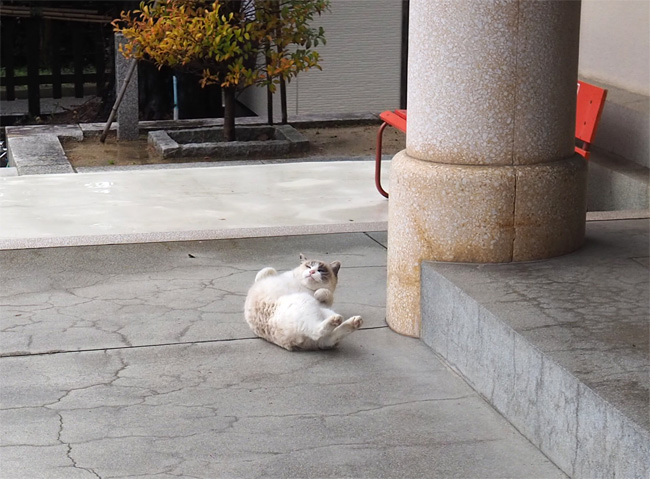 そして帰って行きます。きいたところ、神社で飼っている猫さんではないそうなのですが、お世話する方はいらっしゃるとのことです。
