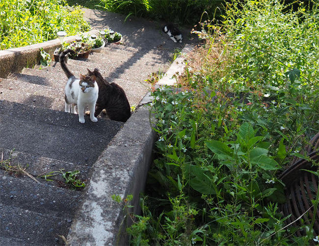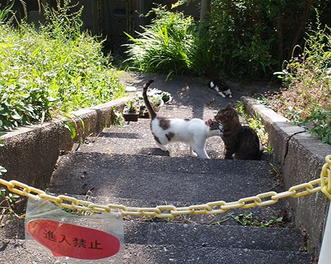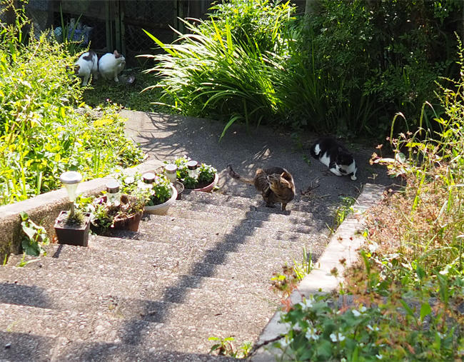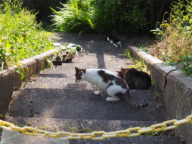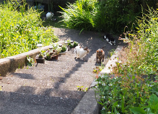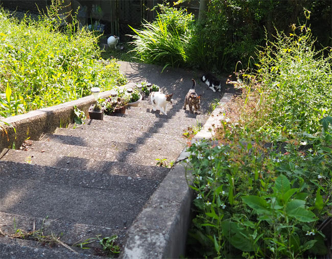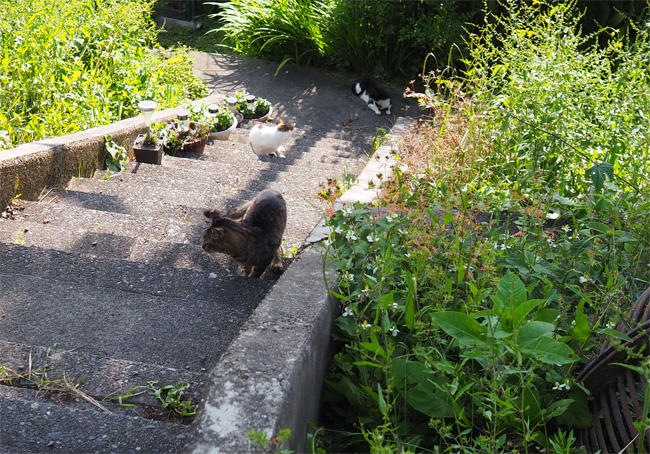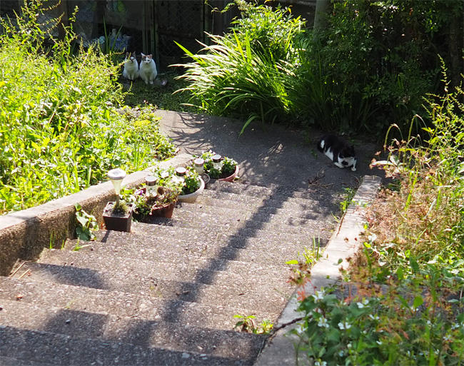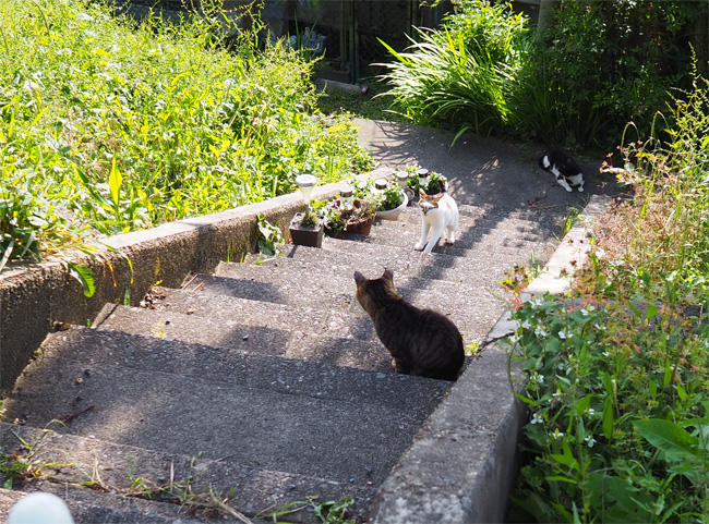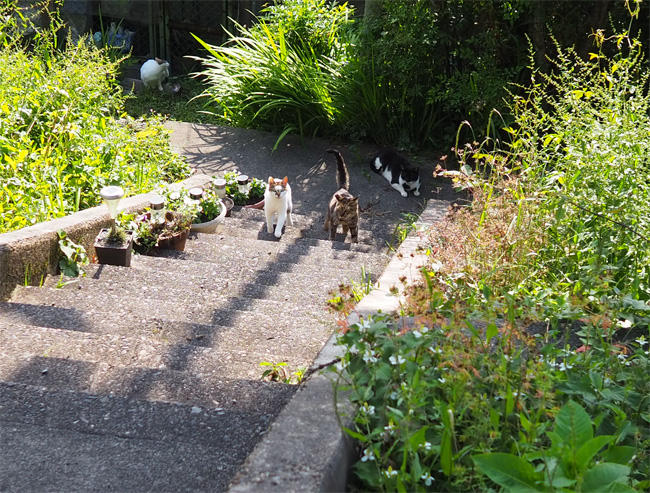 キジ白さんも移動して一緒に登ってきます