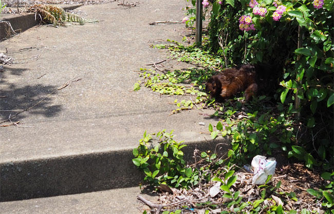 現れた黒猫さん、横道が気になります。