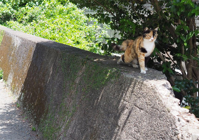 続いて三毛猫さんが現れます。気持ちよさそうな背伸び