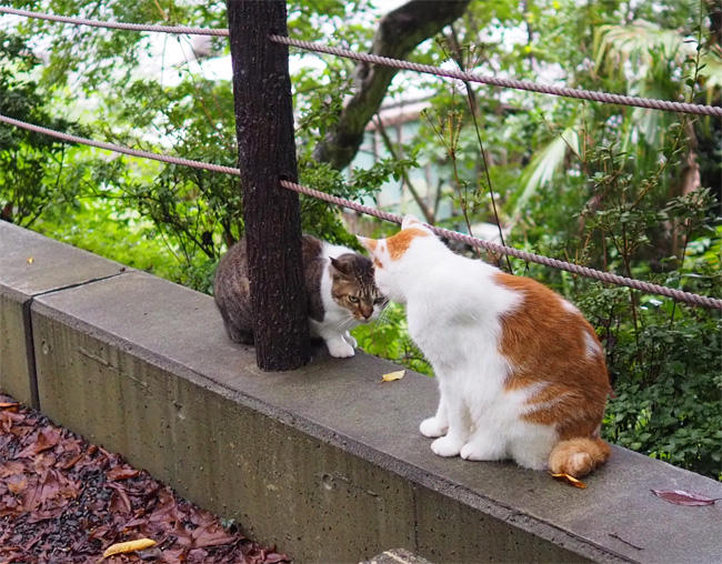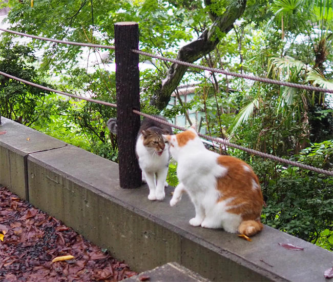 上には別の茶白さんとサバ白さんが対峙しています。