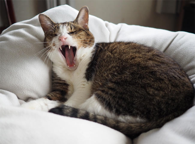 よく食べて良く寝ます。あくびをしてばかり