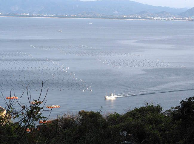 山頂の近くなので更に見晴らしが良くなります。養殖場も見えますね。