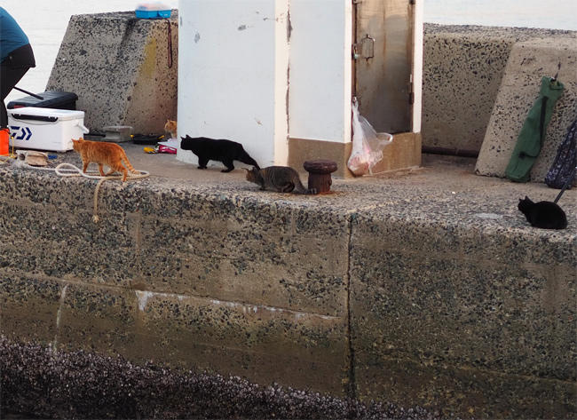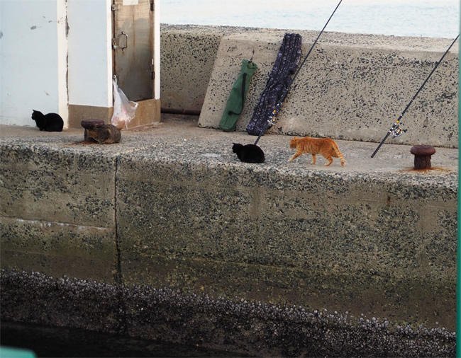 と思ったら、本土の港に着いたら猫さんたちはまだ活動中です。
