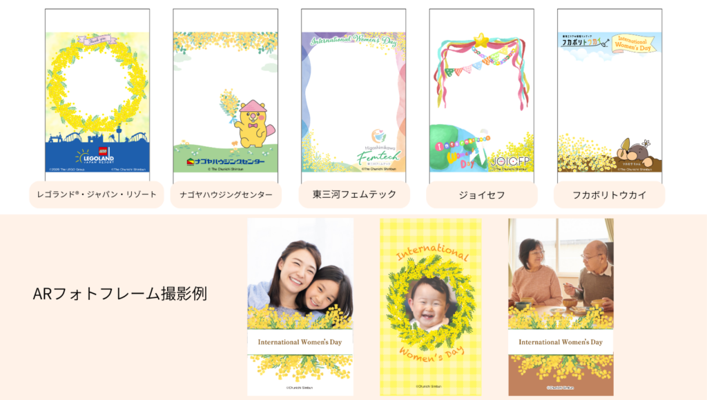 ミモザをあしらったオリジナルのARフォトフレームとともに、