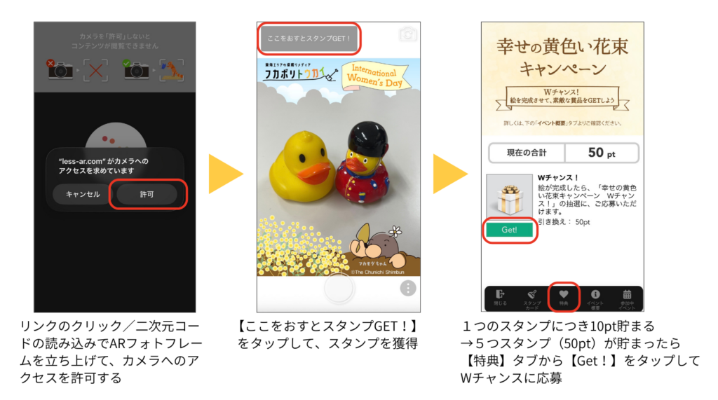 スタンプ獲得&Wチャンス応募 画面操作詳細
