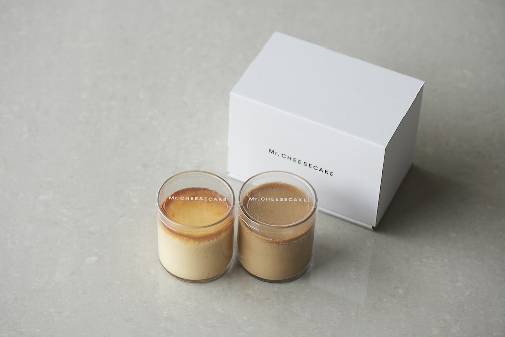また、大丸東京店とジェイアール名古屋タカシマヤではカップタイプ商品「Mr. CHEESECAKE Petit」のクラシックとキャラメルの2種類のフレーバーをセットにしたボックスが登場。カップに入っているためそのままいただくことができ、手土産などにもおすすめです。ケーキの上はベイクド、下はレアのような1つで2つの食感を楽しむことができます。
