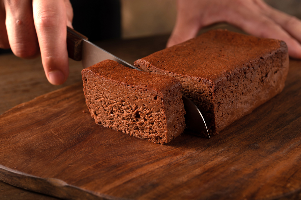 解凍したガトーショコラは、湯煎などであたためたナイフでカットすると断面が美しい仕上がりに。厚みは6等分にカットした大きさがおすすめです。