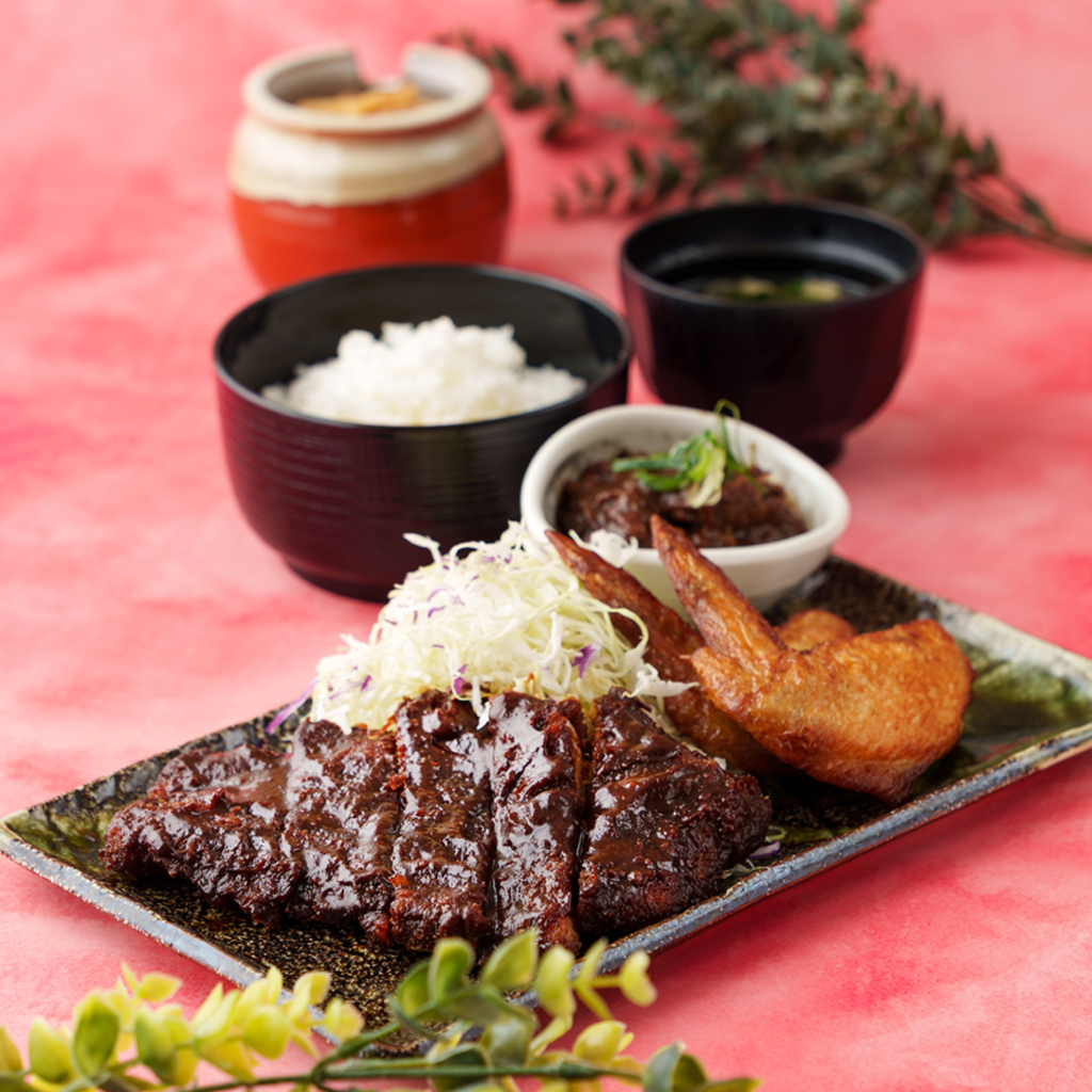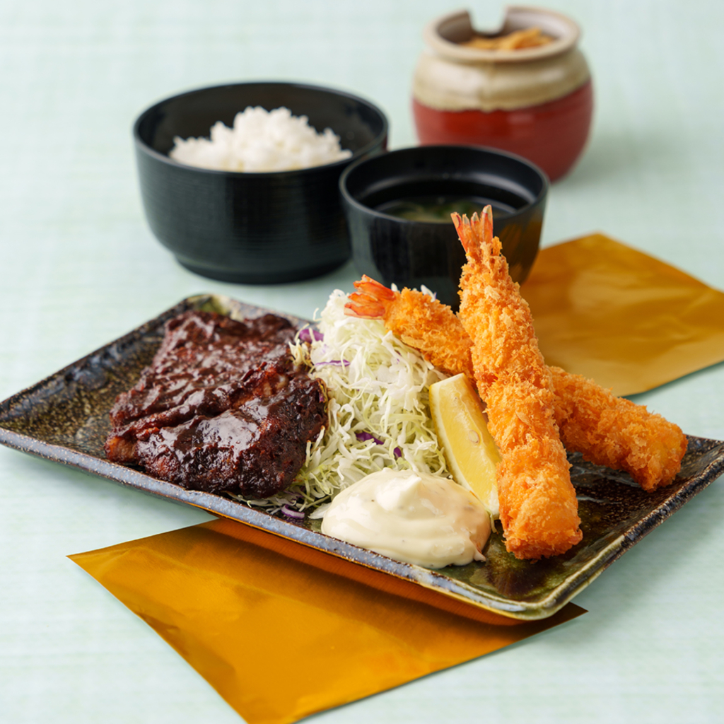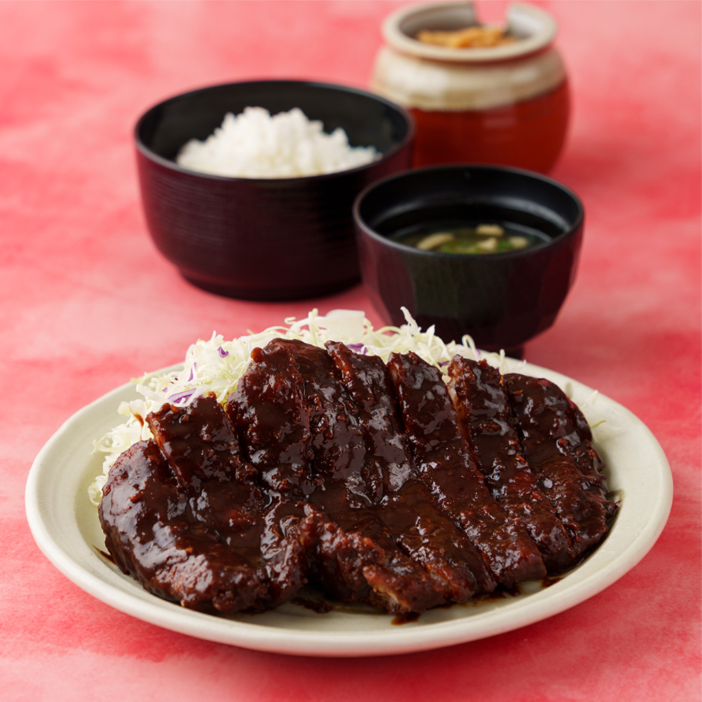 おすすめは味噌ロースかつをはじめ、味噌カツ・名古屋コーチン手羽先唐揚げ・どて煮がセットになった「名古屋ぜいたく定食」や味噌カツ・エビフライがセットになった「金シャチセット」。