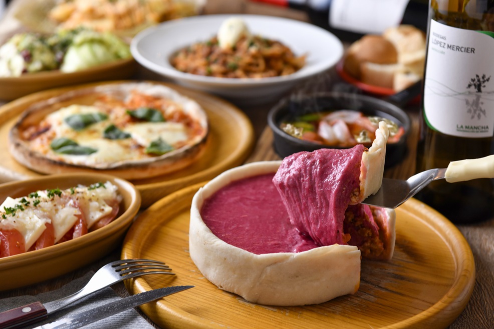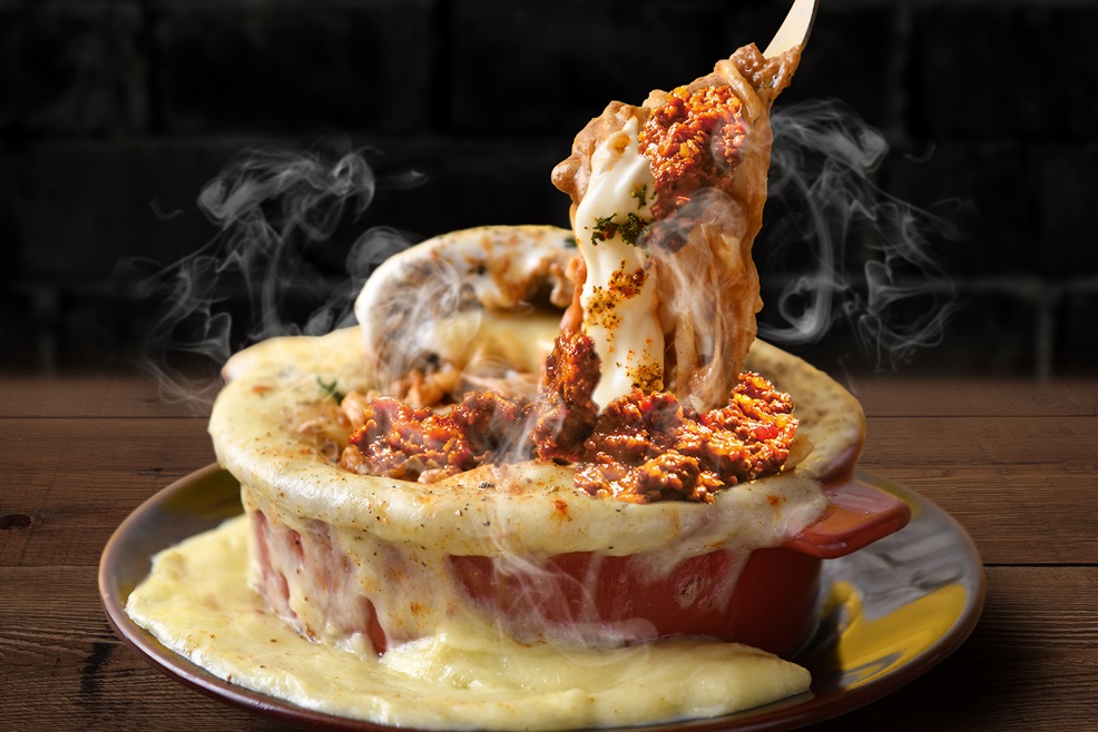 器の外まで溢れんばかりのチーズと溶岩のようなミートソースに視線も釘付けになってしまう「溶岩チーズハンバーグミートパスタ」や、カットするとあふれ出すチーズが圧巻の「シカゴピザ」など、思わず動画や写真を撮りたくなるようなワクワクする演出にこだわった料理が楽しめますよ。