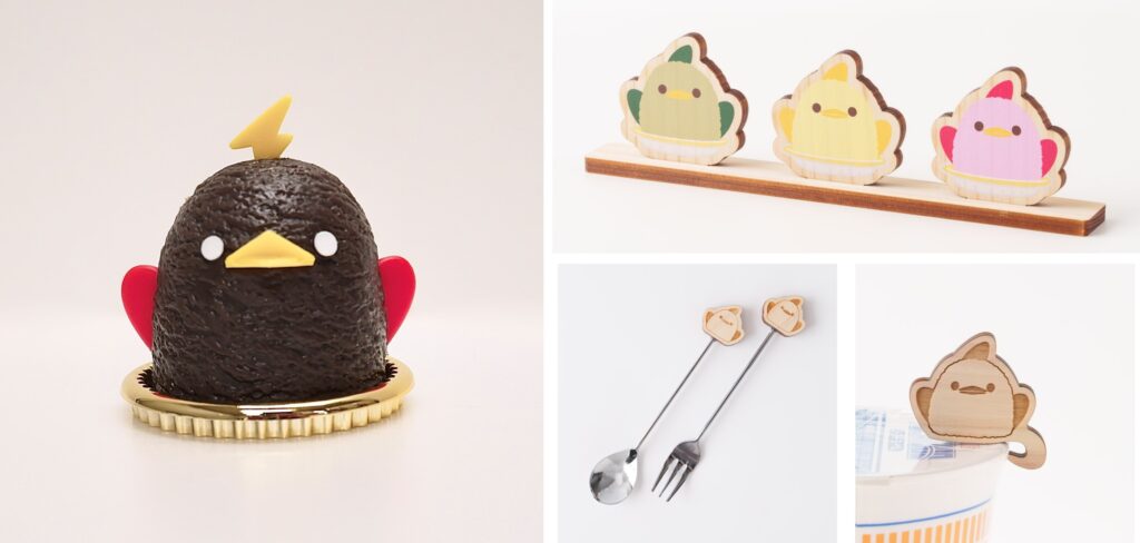 また、本物そっくりな「ブラックサンダーぴよりん」のミニチュアマスコットが初登場するほか、関連グッズの販売も。ミニチュアマスコットはボールチェーン付きで、色々な所に着けることができるため、一緒におでかけを楽しみたい方にはもってこいのアイテムです。