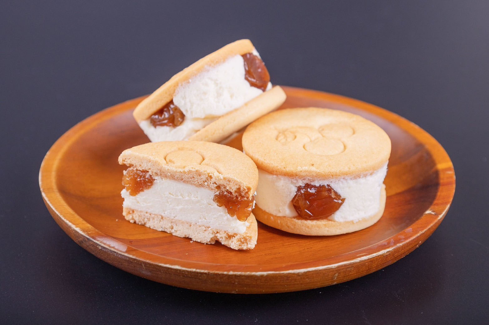 たっぷりのクリームと甘酸っぱいドライさくらんぼのクッキーサンド