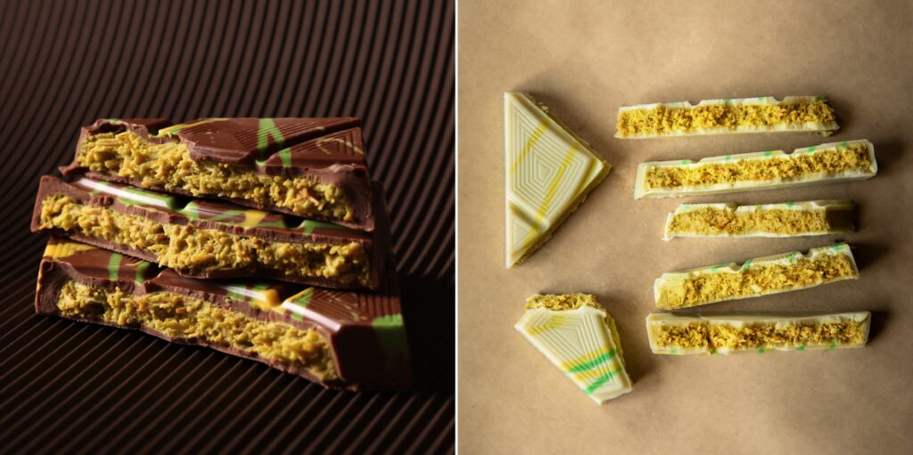 チョコレートの優しい甘さと、濃厚なピスタチオ、そしてカダユフのサクサク食感がくせになる新感覚スイーツの「ドバイチョコレート」。ミルクチョコレートの「ピスタチオドバイチョコレート」とホワイトチョコレートタイプの「ピスタチオドバイチョコレート ホワイト」が登場します。