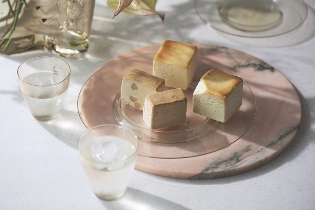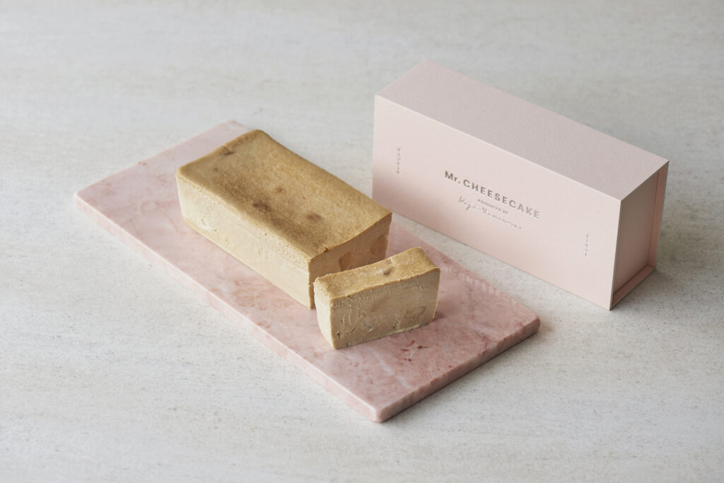 「Peach Earl Grey」に、甘く優雅な香りのジャスミンティーに桃とバニラを合わせた「Royal Jasmine」とMr. CHEESECAKEのシグネチャーフレーバー「Classic」の3種のキューブ型チーズケーキがオリジナルのボックスに詰め合わされたアソートセット(税込4,428円)も登場し、ポップアップストアでも販売されます。
