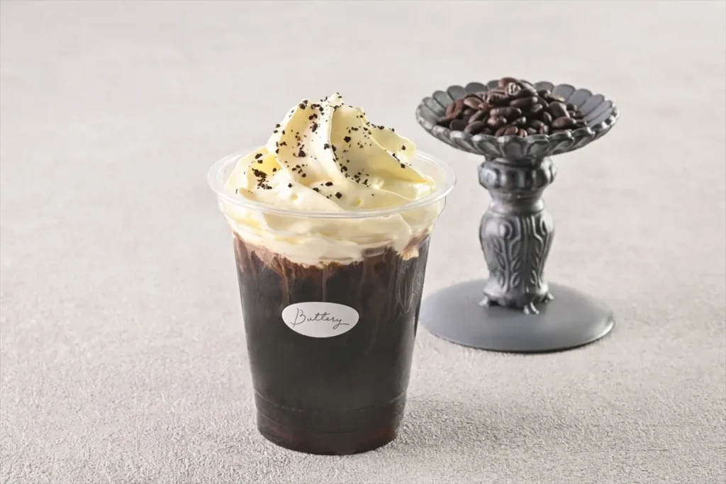 『Butteryコーヒージェリー』は、バタリーオリジナルブレンドのエスプレッソに、コーヒーゼリーを合わせました。ホワイトチョコのエスプーマに、砕いたコーヒー豆をあしらった香り豊かなドリンクです。