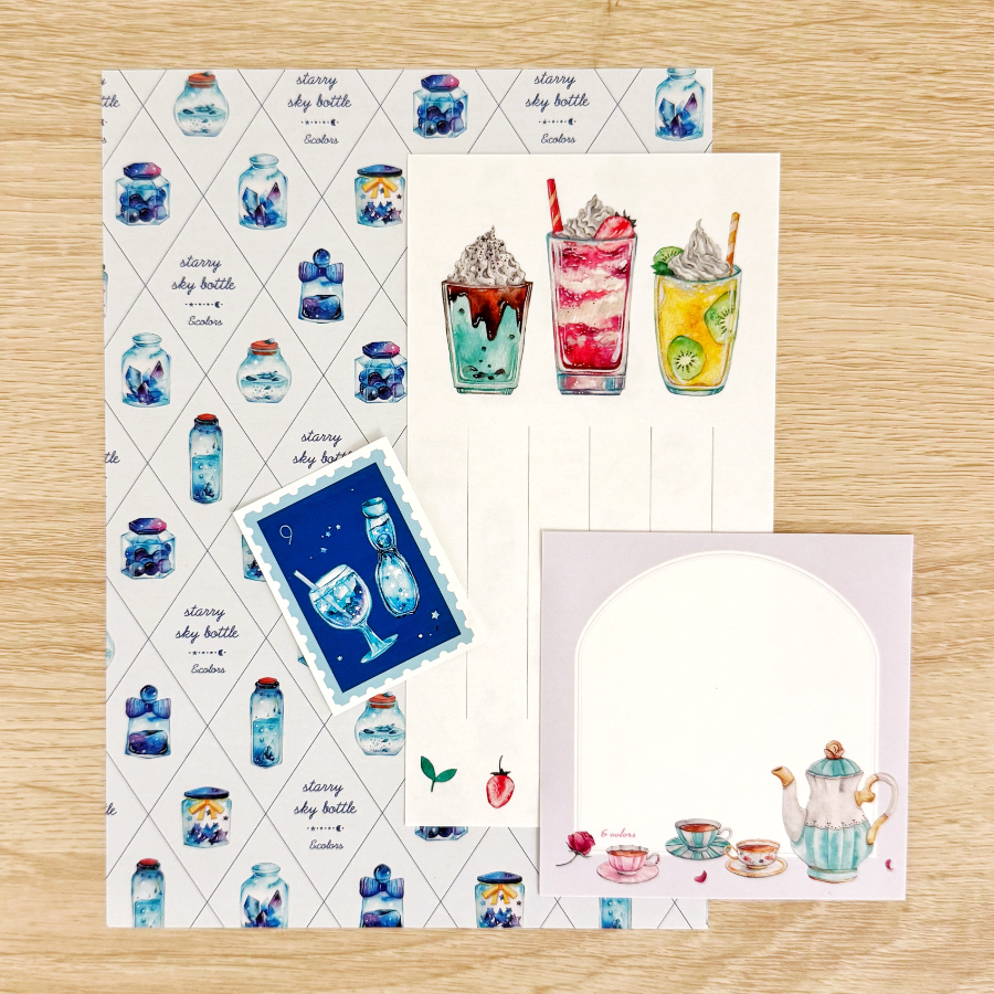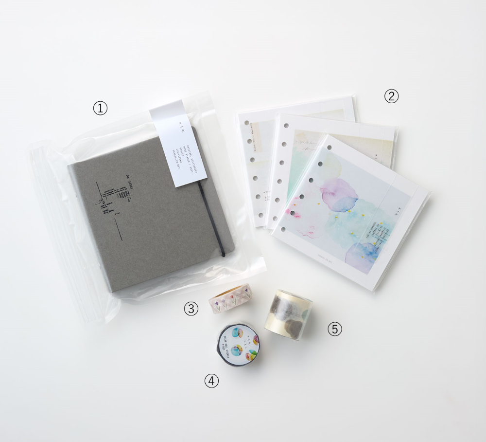 〈&colors〉25周年限定紙ものセット(A5ペーパー10枚、一筆箋10枚、スクエアメモ10枚、シール1枚) 701円 ※100セット限り