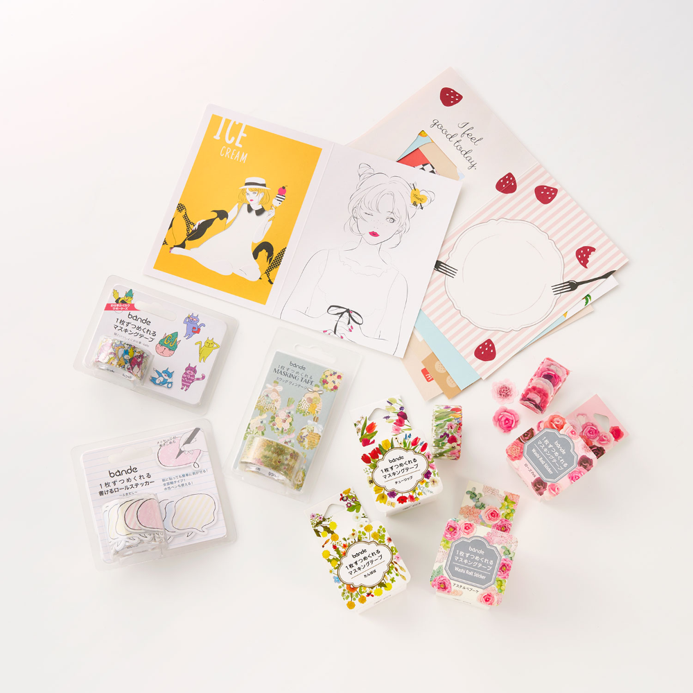 〈bande〉bandeバラエティセット(ロールステッカー7個、デコレーションカード5枚、ノート1冊)2,501円 ※各種ランダム ※各日25セット限り