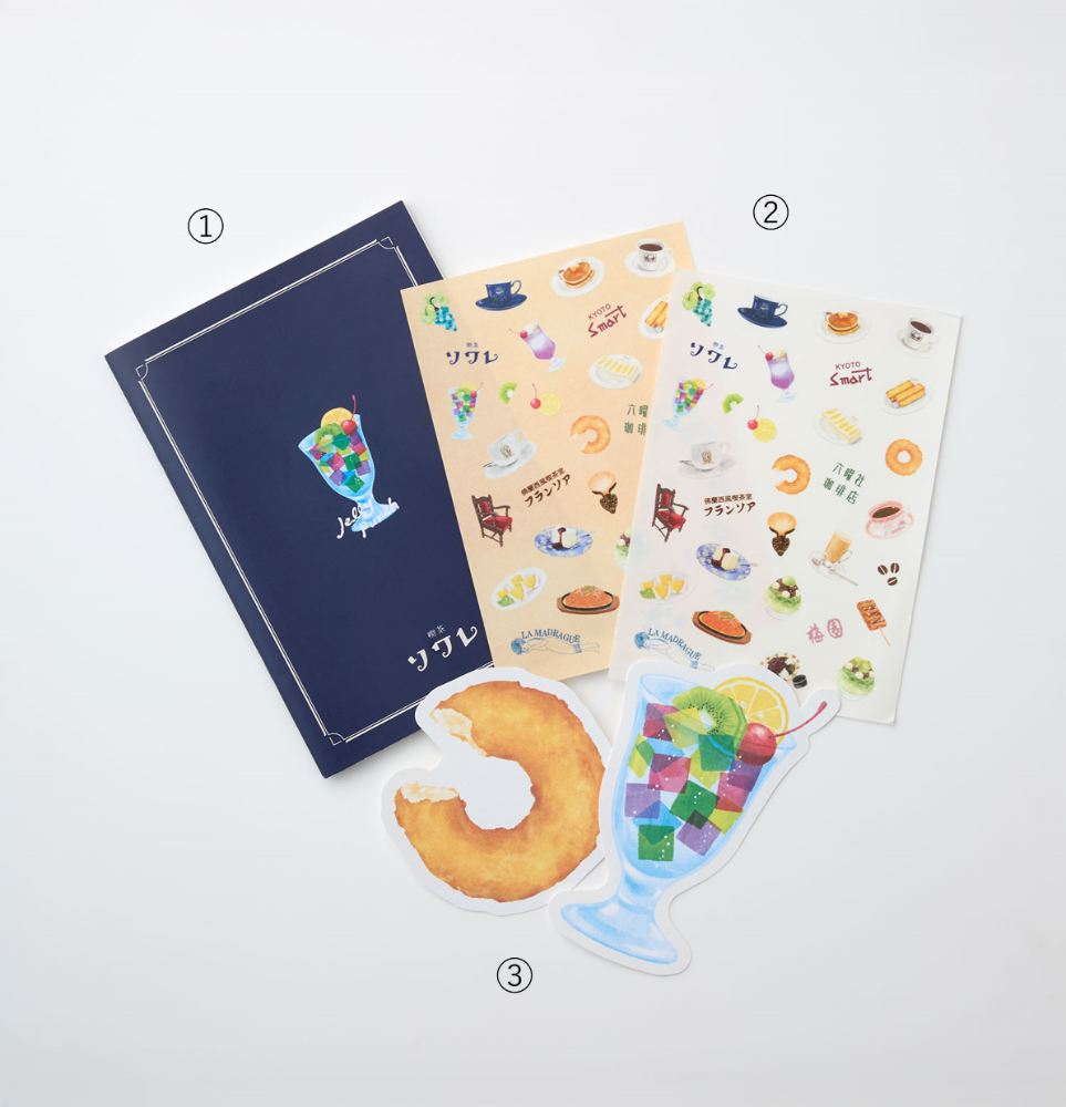 〈forme. 〉①A5ノート 495円 ②マスキングシート(2ガラ各1枚入) 660円 ③イベント限定ポストカード 各275円