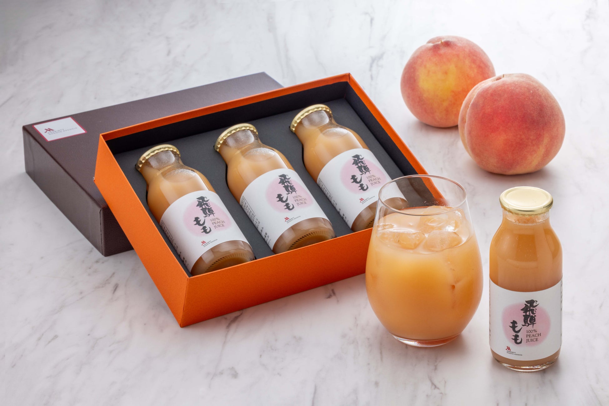 飛騨桃100%ジュースは今年収穫された「白鳳」を生のまま贅沢に絞り、二度濾して口あたりなめらかに仕上げたストレートジュースです。