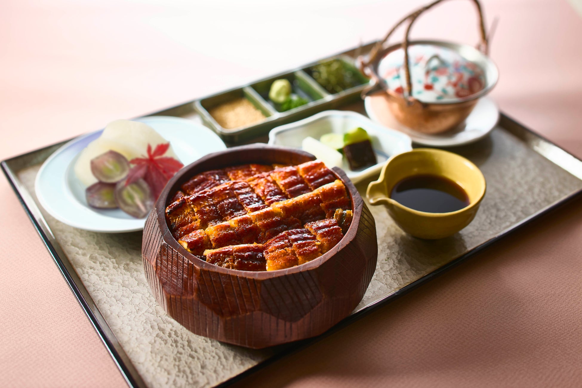 身の柔らかさとふっくら感が上品な三河一色産の鰻の白焼きを、一度蒸してから焼く関東風。蒸した鰻を軽く焼き目がつくまで焼いた後、愛知県の九重みりんを煮詰めて味を調えたタレを塗りながら焼きます。ごはんは魚沼産コシヒカリ。特製のタレと鰹節、鮪節、昆布のすっきりとしたお出汁で味わうひつまぶしをぜひ堪能してください。