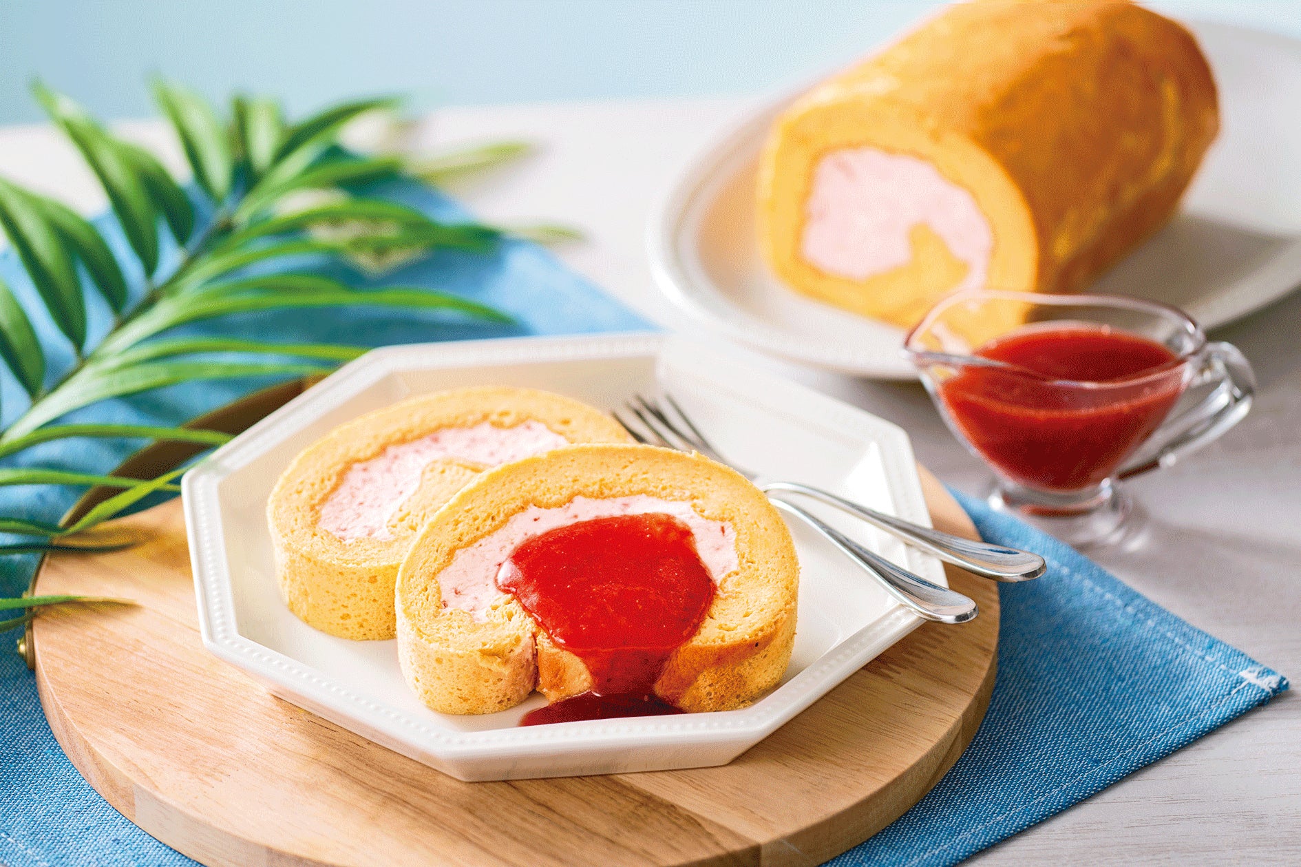〈お菓子と暮らしの物 りた〉つぶつぶ糸島いちごロールケーキ フルーツソースがけ(1本)1,707円 [30本限り]