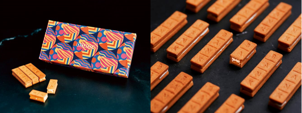 「BANK SAND」8枚入り(税込2700円)は、カカオを収穫後、丁寧に発酵させ抽出した希少なカカオバターを主役にしたサンドクッキー。チョコレートが生まれる過程の素材にこだわり使用できるのも、カカオの栽培から取り組んでいるからこそ。食感の良いタルト地のクッキーの中に、コロンビア産の希少なカカオバターで作り上げた口溶けなめらかなキャラメルと、ホワイトチョコレート、バタークリームをサンド。カカオバターの華やかな香りと口溶けが楽しみな一品。