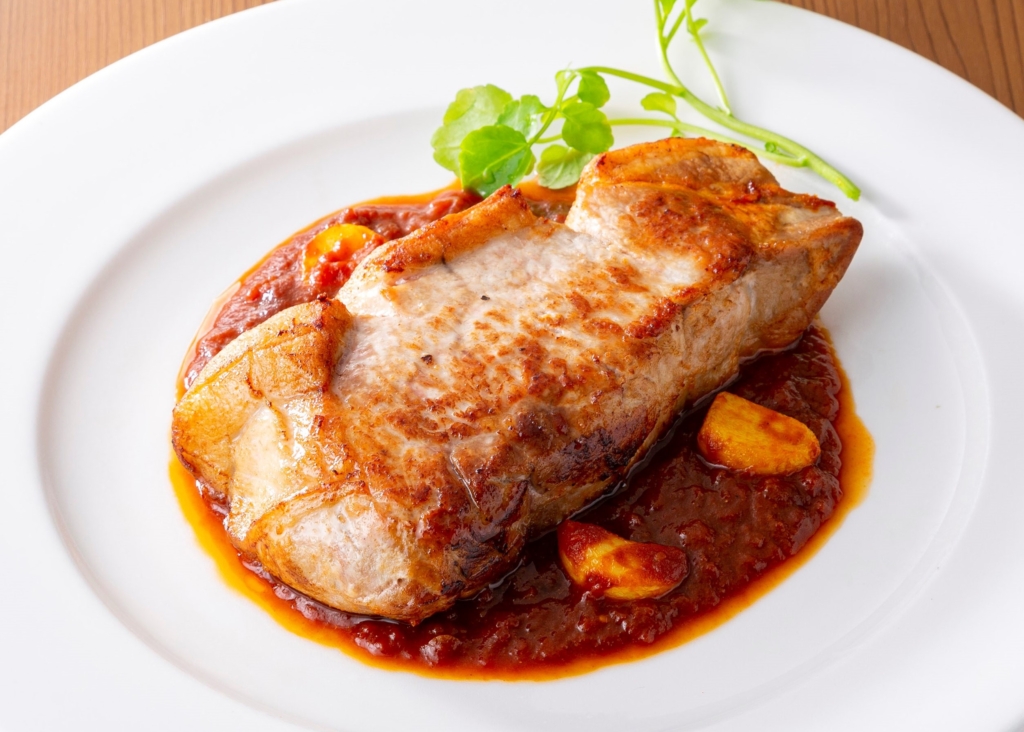 「KOYOENのド~ン!テキ」(2,178円)は厚みのあるトンテキをド~ン!と迫力のボリュームで、トマトベースのソースで仕上げました。