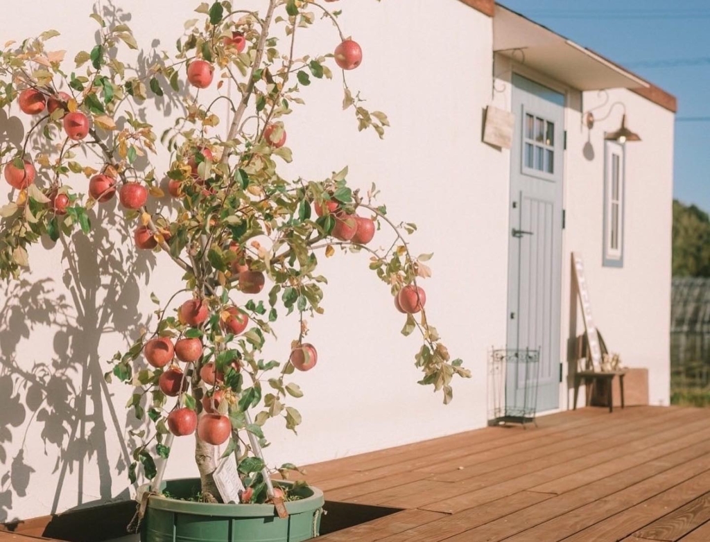 長野県産りんご専門店の「なっぷる」(愛知県額田郡幸田町)は昨年12月、りんご飴やりんごを使ったオリジナルスイーツ等を販売する新店舗『ポムdeなっぷる』をオープンしました。赤く実をつけた本物のりんごの木をシンボルツリーとする水色の扉が目印で、まるで絵本から飛び出してきたような外観です。