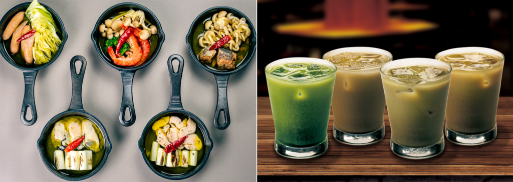 〈左〉アヒージョ〈右〉ティーラテカクテル