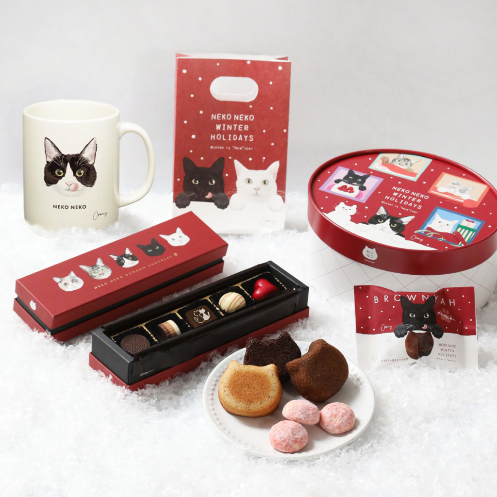 内容:『ねこねこボンボンショコラ』1箱、『ねこねこウィンターホリデーBOX』1箱、『ウィンターホリデープチバッグ』1枚、オンラインストア限定グッズ『ねこねこウィンターマグカップ』1個、『ねこねこウィンター限定ショッパー』2枚