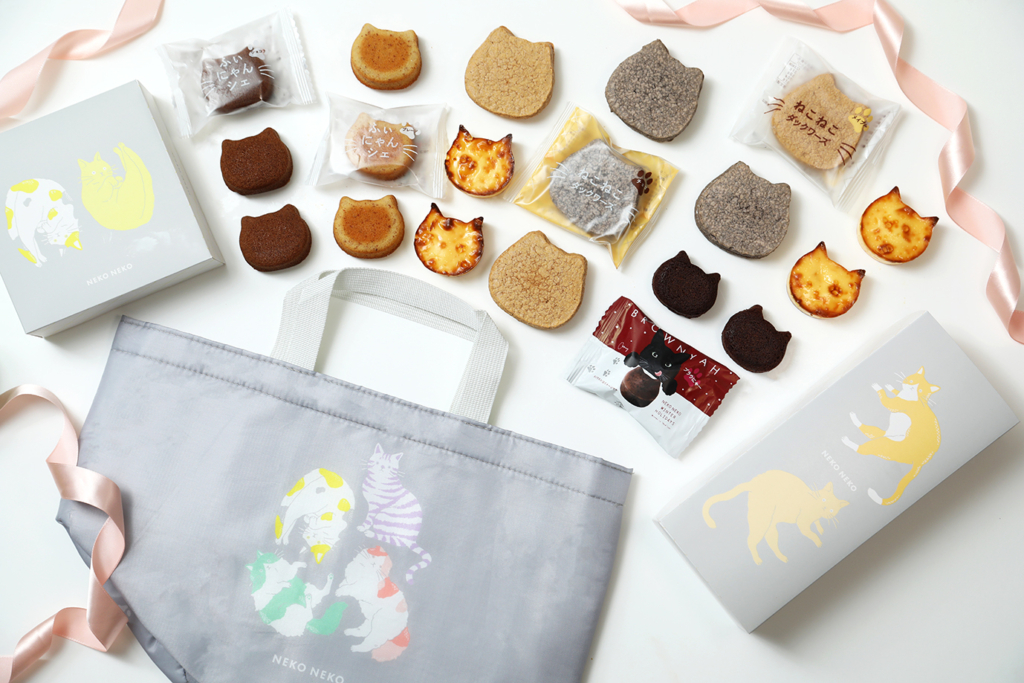 内容:『にゃんチー プレーン4個入』、『ねこねこダックワーズ』1箱(6個入)、『ふぃにゃんシェ』(プレーン、ショコラ各3個)、『ブラウにゃー』3個、「ねこねこ」オリジナル保冷バック