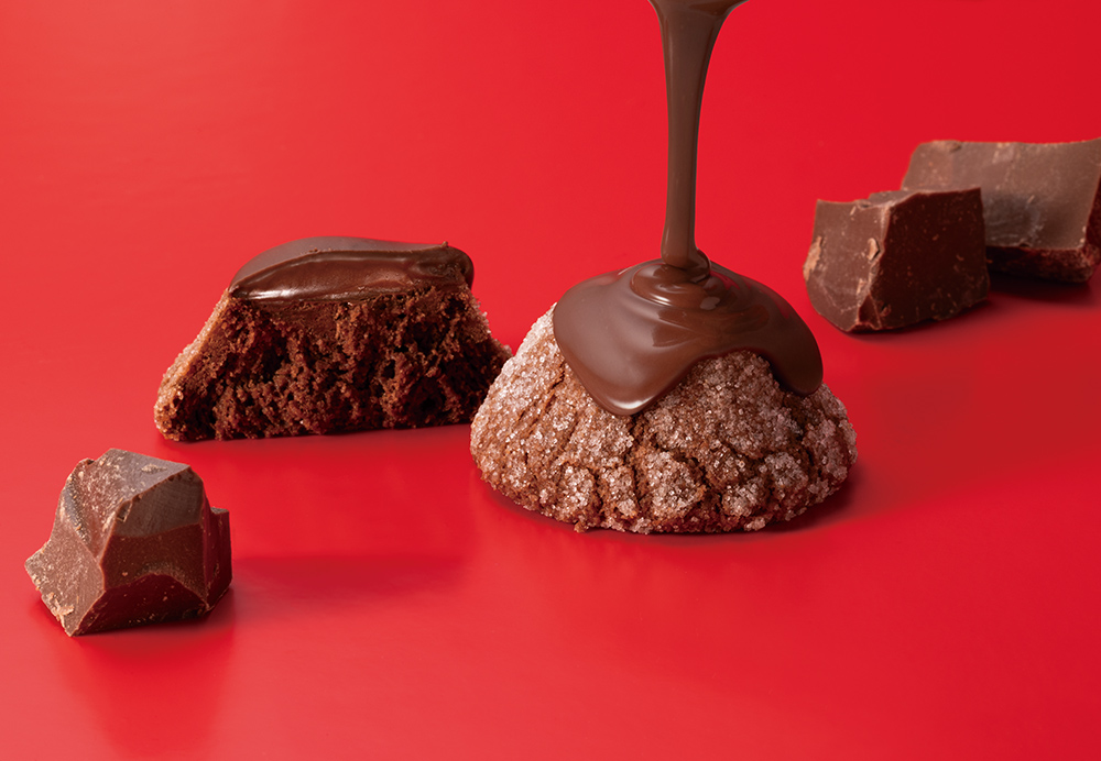 ショコラバター香るショコラフォンデュ『バターステイツ THEフォンデュショコラ』。バター含有率33%の濃厚なショコラバタークッキーにココアパウダーを練り込んだなめらかなホイップショコラをとじこめ、上からスイートチョコレート入りのコーティングチョコを流しかけたショコラづくしの一品。