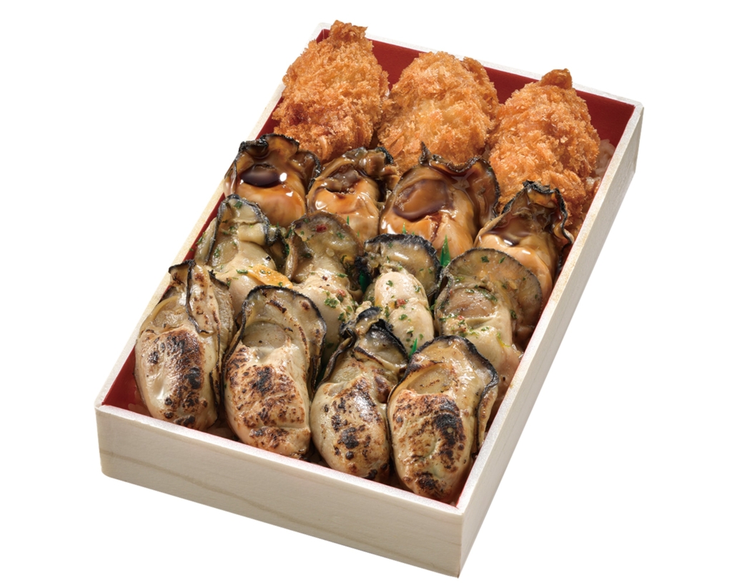 「千両屋」の「かきづくし弁当(3,240円)」は、広島県産の大粒かきを4種の味で食べ比べることができます。一度にさまざまな食べ方が楽しめるので、かき好きにはたまらない一品です!