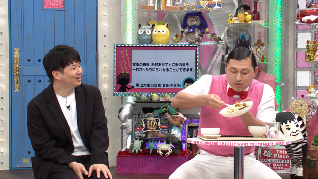ぴったり合わせは簡単?それとも難しい?食事の最後におかずとご飯の量を一口ぴったりに合わせることができるという口コミ。どんなおかずでも問題ないと話す平山さんに対して、簡単だと余裕の春日。今回は麻婆豆腐定食で一口ずつ残せるか春日、阿部アナと平山さんの3人で検証する。先に春日と阿部アナの検証が終わっても食べ続けている平山さんに若林がしびれを切らして強制退場命令!果たして3人はご飯と麻婆豆腐をぴったり一口ずつ残せたのか。