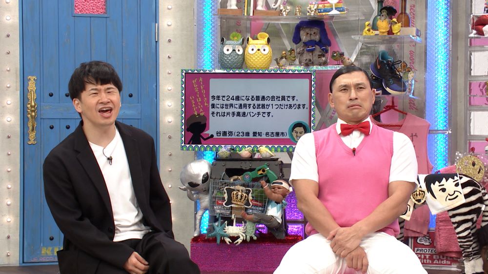 今年で24歳になる会社員の谷さんから「世界に通用する武器が1つだけあります。それは片手高速パンチです。」という口コミ。高校生の頃に格闘技好きな友人とパンチをして遊んでいたときに、谷さんのジャブを見た友人に「めちゃくちゃ早い」と言われたそう。10秒間で30回のパンチができたら早いとのことで、パンチの回数を測ることができる専用の機械を番組が購入。谷さんに片手高速パンチの実力を見せてもらう。続いて、K1経験者の春日も谷さんからフォームを教わり記録に挑戦する。春日は30回の壁を超えることができるのか!?“イッツ タニ タイム!”