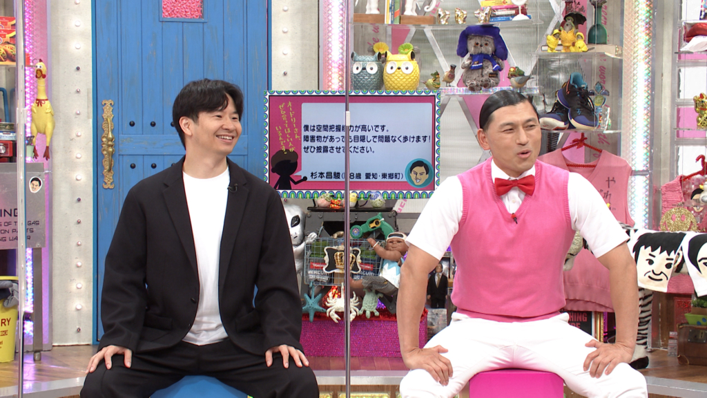 空間把握能力が高いのでぜひ披露したいという男子高校生が友人を連れてスタジオへ。中学時代サッカー部に所属し、バックパスが高確率で通る実力の持ち主だという。今回はスタジオに足ツボを用意して、空間把握能力を披露してもらうことに!コースを頭にインプットしてから目隠しを付け、足ツボをよけて歩いてもらう。友人からも「全体的にスペックが高いのでなんでもこなします!」と太鼓判が押されたところでいざ挑戦!スタジオ一同全員が挑戦してみるが、果たして結果は!?