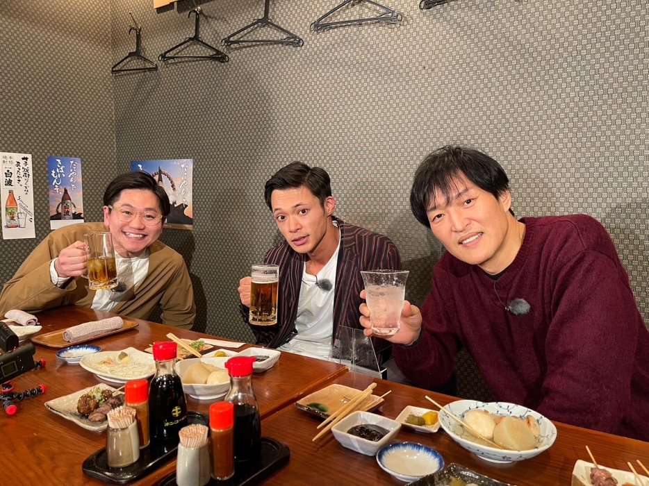 海が似合う男を決めるフィジーク大会が4日後に控えているというショーゴだが、尊敬するジュニアと飲めるということで気合をいれて仕上げてきたという。コンビ結成の話題になると、岡山県出身のたけるは「とりあえず有名になれればいいと思って、読モを目指していた」という当時の夢を披露。その後、夢を諦め芸人を目指してネット上で見つけた「相方募集掲示板」で現在の相方・ショーゴと出会ったという。特殊な出会いにジュニアたちも驚くが、実はその前に同じような出会いをして結成したコンビを聞くと一同大爆笑する。さらに、たけるの“つっこみ芸”の誕生秘話や、ジュニアとのエピソードで盛り上がる。