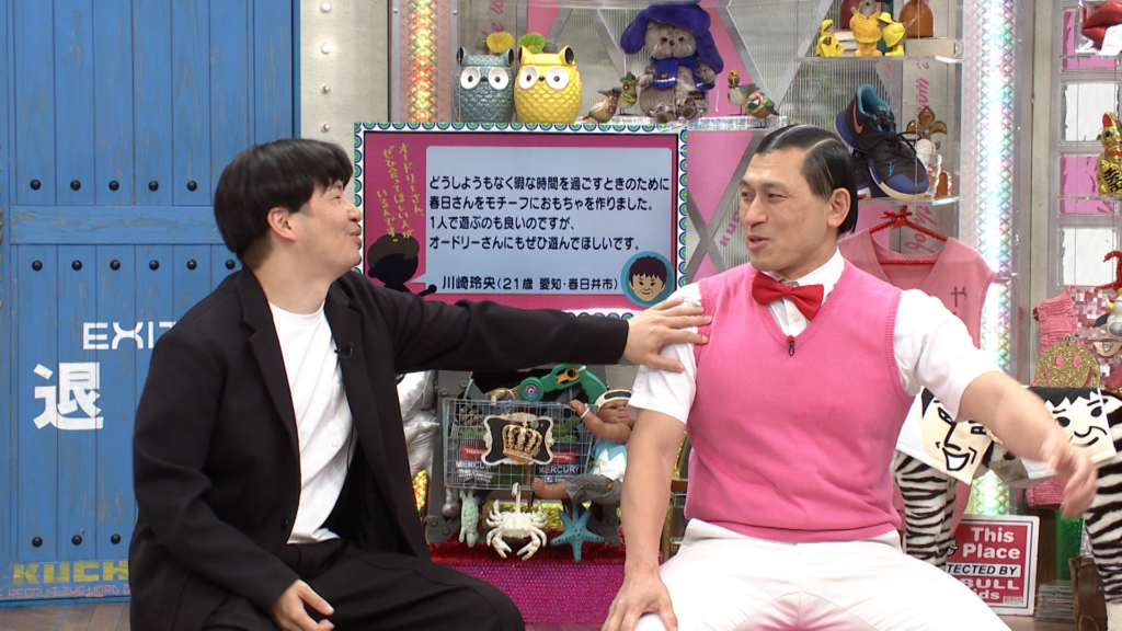暇つぶし用に春日のおもちゃを作ったという大学生から、「ぜひ本人と一緒に遊びたい!」とのクチコミ。ファッションチェックや、日常生活についての質問で盛り上がったところでようやく本題へ。春日モチーフのおもちゃを出してもらうと、ハンドスピナーとバリエーション豊富な春日の写真が…。ハンドスピナーに春日の写真を貼って回すおもちゃなのだそう。ハンドスピナーに一工夫を加えてみようと考えた末に、「春日を回してみよう」という考えに至ったという。若林はこのおもちゃの番組グッズ化も検討!?