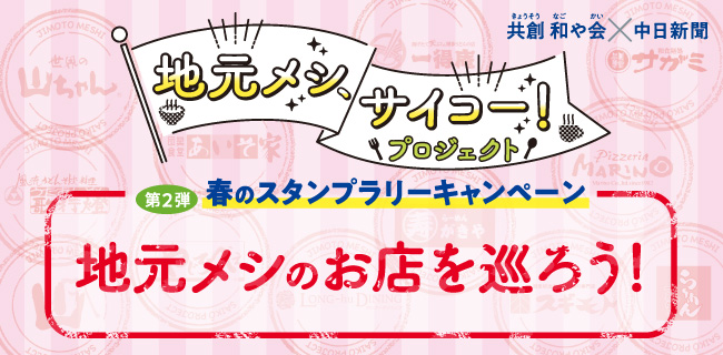 外食関連業界団体 「共創 和や会 (きょうそう なごやかい)」と中日新聞が実施する「地元メシ、サイコー!プロジェクト」の第2段として、春のスタンプラリーキャンペーンを5月8日(日)まで実施中です。