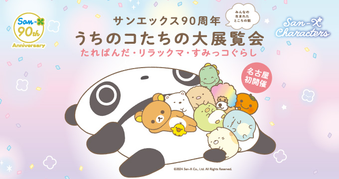2024年4月24日(水)~5月6日(月・休)まで、「サンエックス90周年 うちのコたちの大展覧会 たれぱんだ・リラックマ・すみっコぐらし~みんなの生まれたところの話~」が名鉄百貨店本店[本館]7階催場で開催されます。