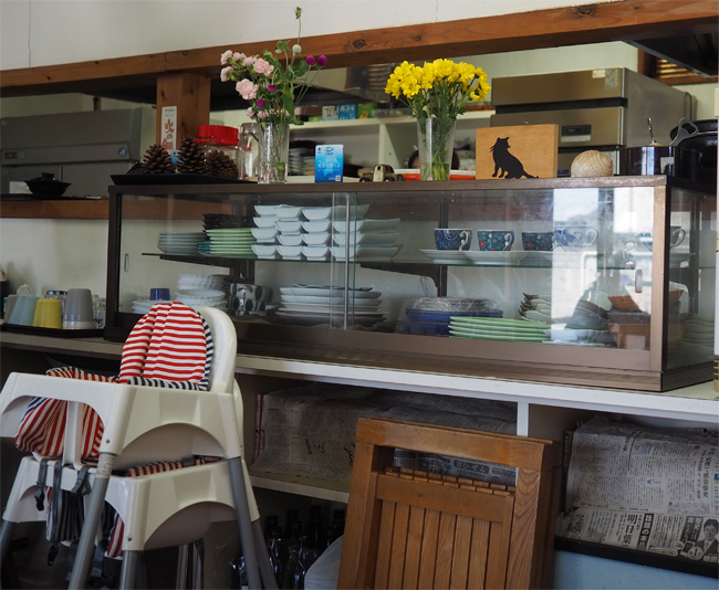 混む前に昼食です!置物に猫さん要素がありますね。