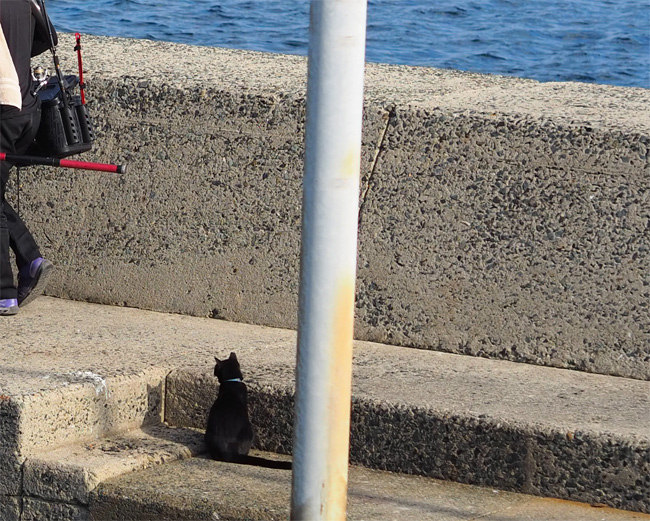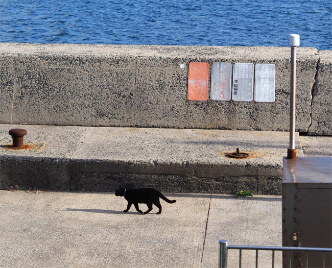 フェリーに乗って二階から外を眺めると黒猫さんが歩いて行っています