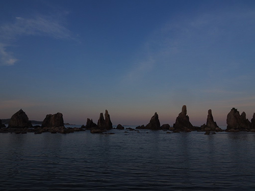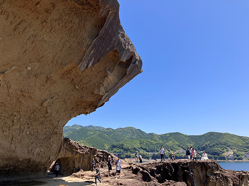 熊野市内、熊野灘沿岸部は世界遺産の構成資産が続く、まさに世界遺産ロードだ。熊野古道自体は今回歩かなかったが、海沿いに続く世界遺産群は、まさに世界に選ばれた風格すら漂う。まずは鬼ヶ城からスタート。圧巻の巨岩が続く散策路は海の美しい景色と相まって、自然の力強さを感じる。