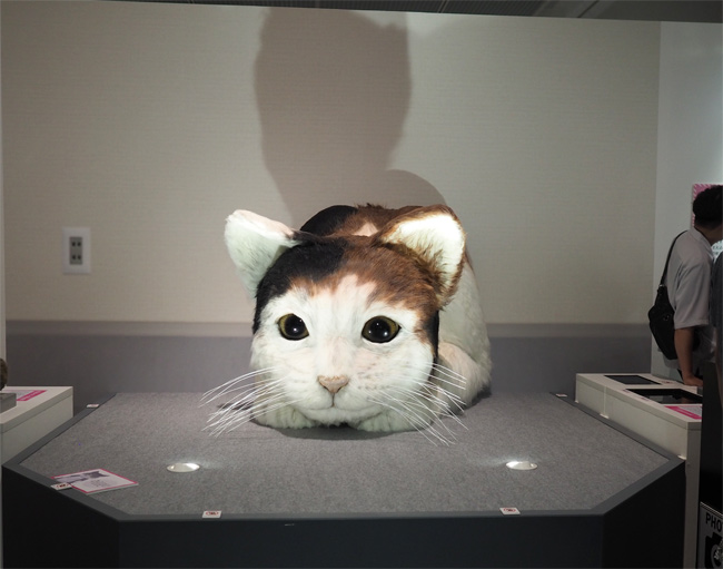 フォトスポット、壁から出てきている三毛猫さん。大きさ的には先ほどのトラさんよりも大きいですね。