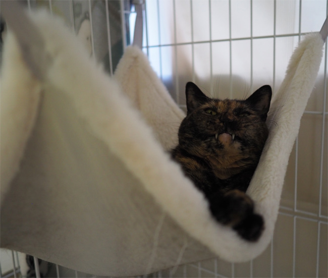 受付付近、里親さんが決まったりの卒業猫さん達があります。