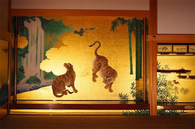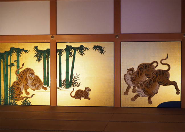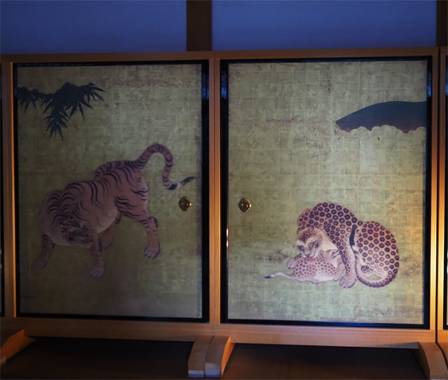 わあ!猫さん・・・いや、完全にネコ科ですね。迫力がある圧巻の国指定重要文化財「竹林豹虎図」です